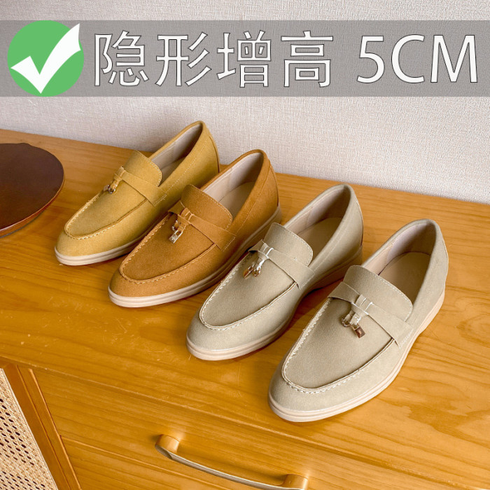 2025春新款英倫風復古流蘇鎖扣平底豆豆單鞋女一腳蹬內增高單鞋女