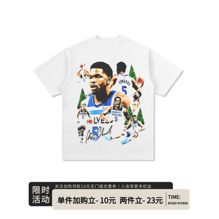 夏季原創愛德華玆Edwards美式復古印花籃球短袖Vintage休閒男T恤