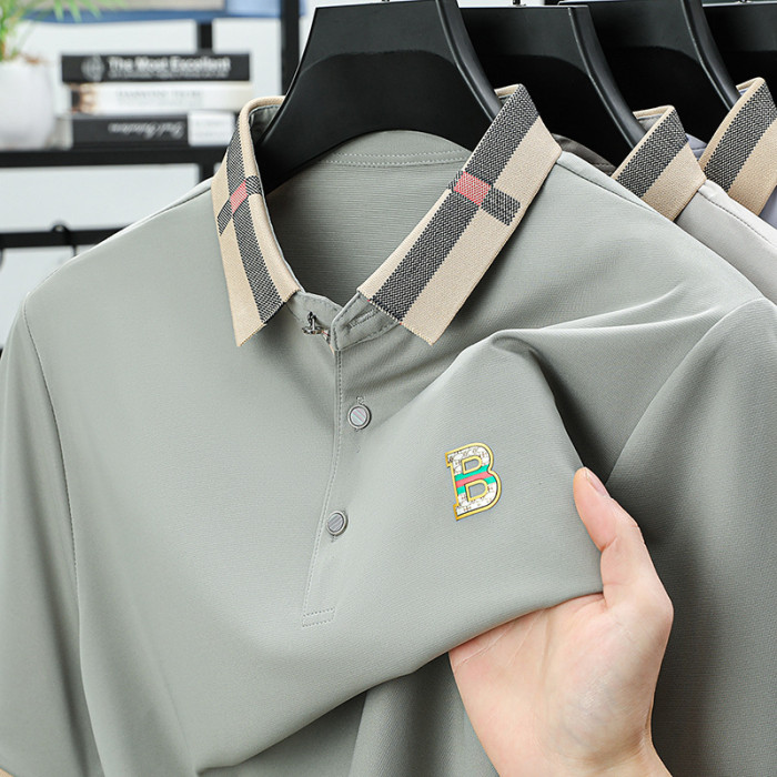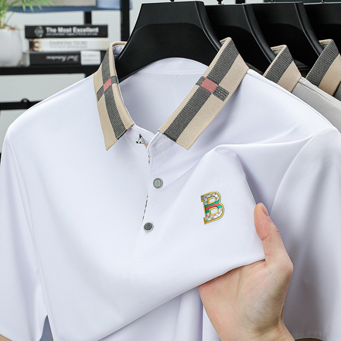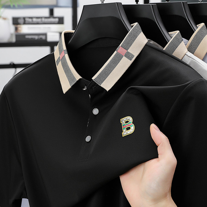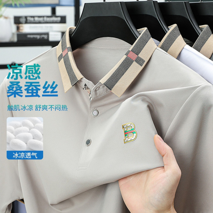 夏季新款含桑蠶絲商務休閒男士polo衫薄款翻領透氣百搭短袖男t恤