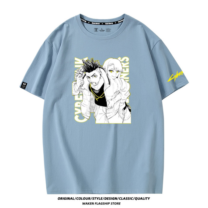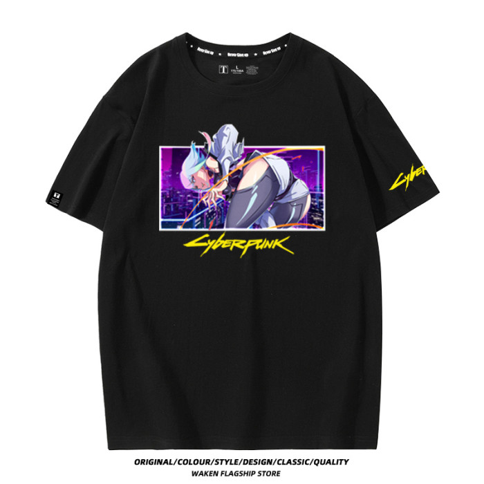 露西lucy賽博龐克邊緣行者同款短袖男T恤女二次元夏季純棉半截袖t