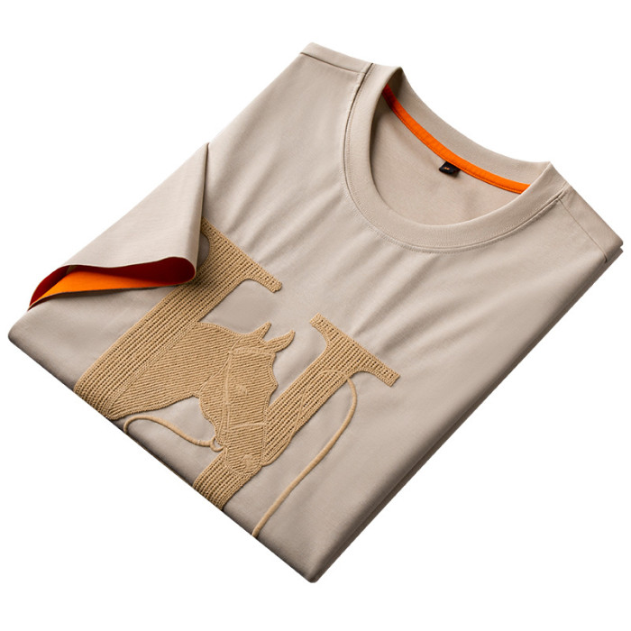 高級刺綉冰絲短袖男t恤2025新款男裝夏季薄款耐磨休閒百搭衣服男