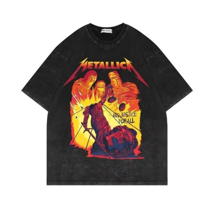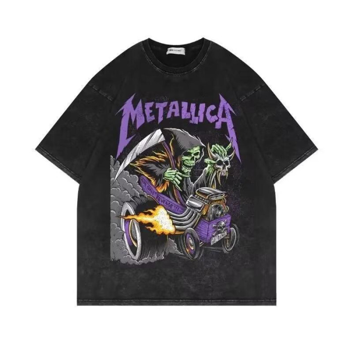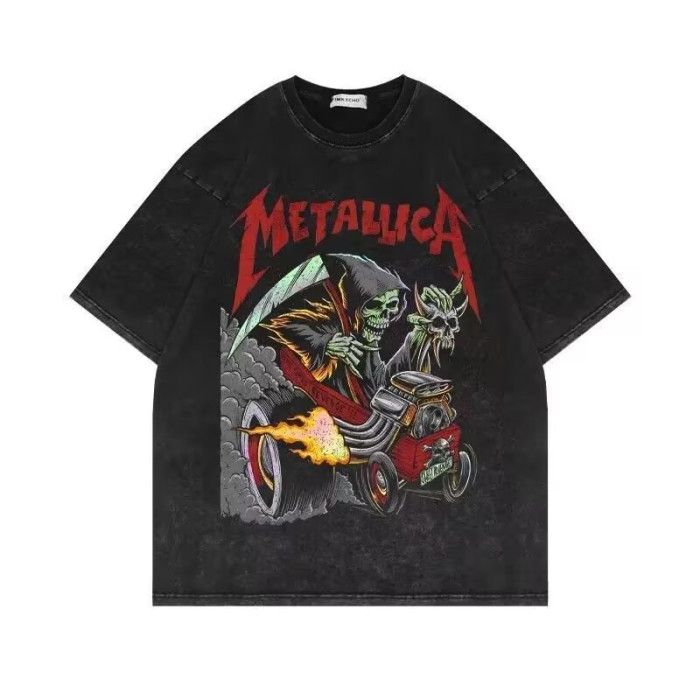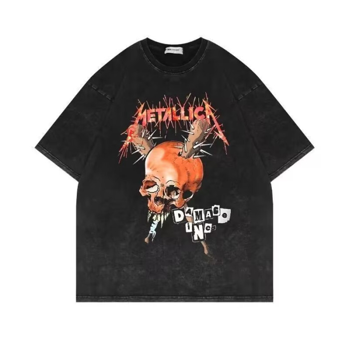 水洗純棉短袖骷髏霸氣寬松復古美式嘻哈男T恤百搭上衣春夏上衣