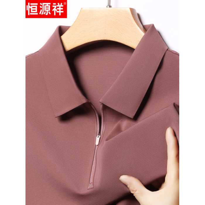 恒源祥高級桑蠶絲短袖男t恤夏季翻領純色polo衫爸爸裝真絲上衣體