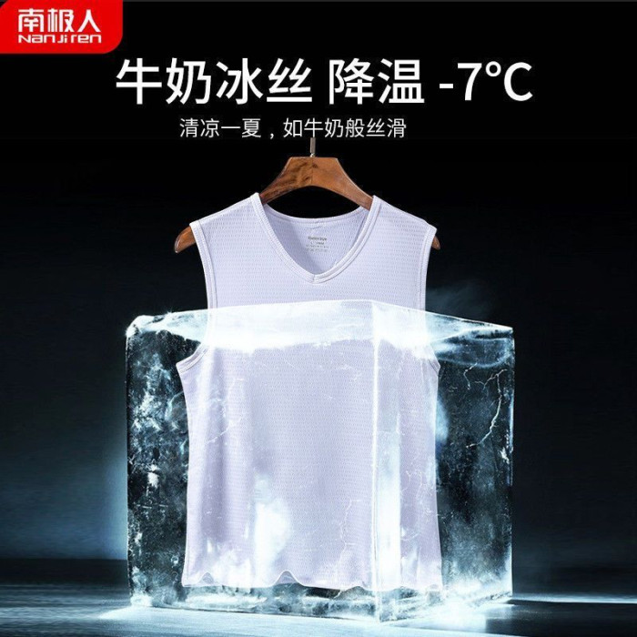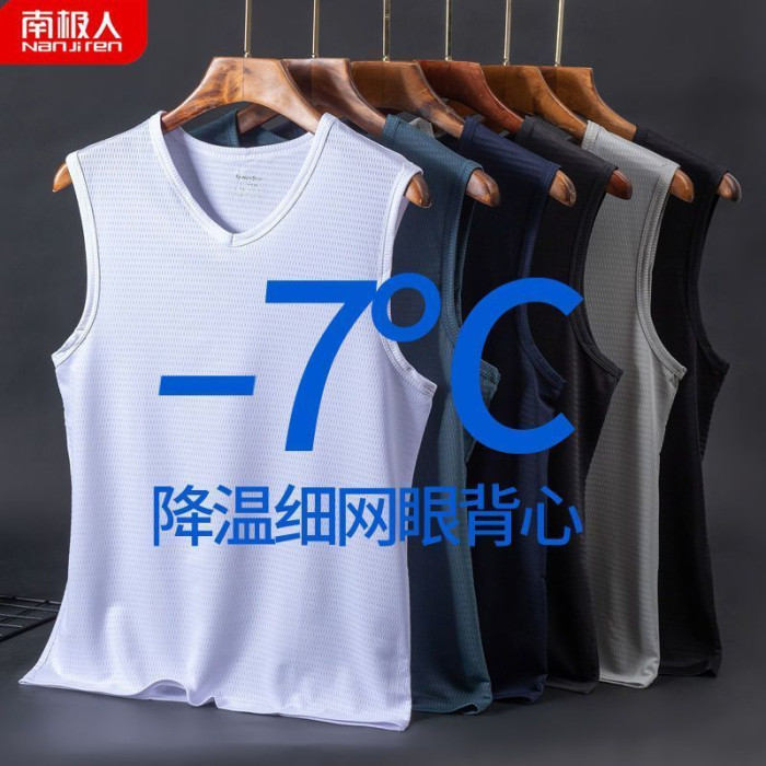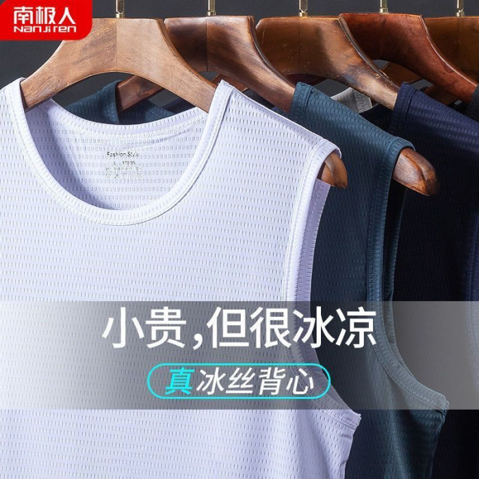 南極人冰絲無袖背心男t恤夏季休閒潮流百搭背心男透氣舒適運動t恤
