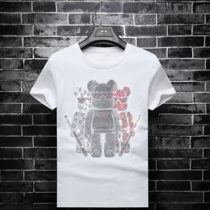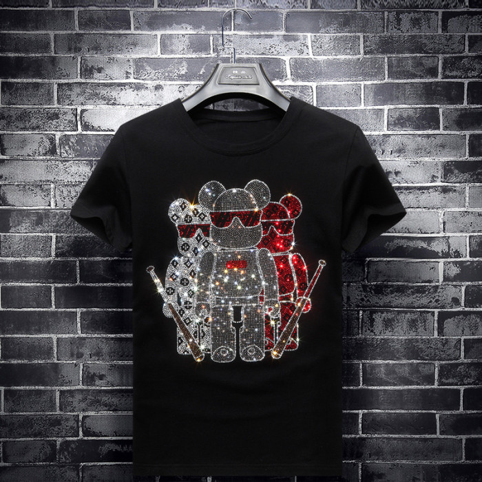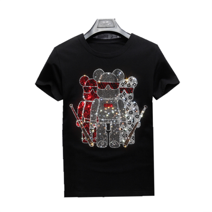 香港專櫃新款男T恤2025情侶燙鑽短袖男韓版個性動漫半袖修身男裝