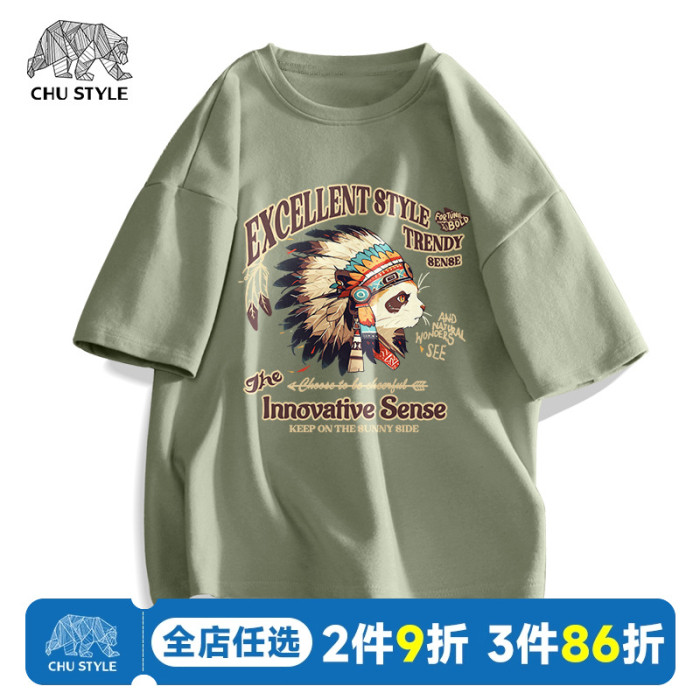 棕櫚綠重磅男t恤夏季新款純棉寬松短袖高街潮牌美式部落男生體恤C