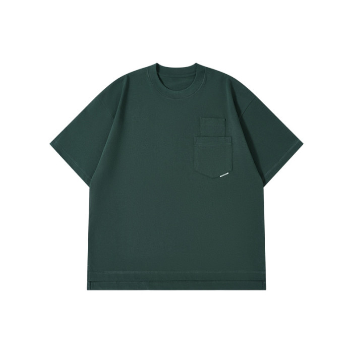 潮牌原創設計雙口袋男式短袖2024春夏新款純棉圓領外穿上衣男t恤