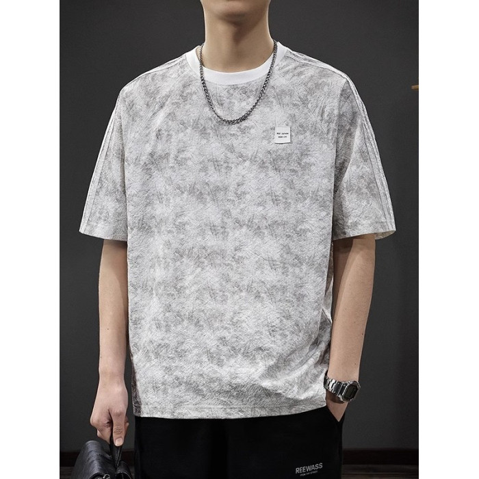 倉石一樹高級感紥染彈力短袖男T恤夏季美式圓領休閒薄款寬松體恤