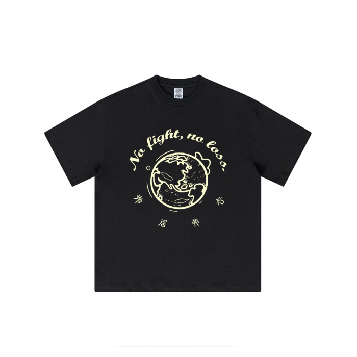 地圖?道德經地球中華道家文化國風新中式寬松重磅男半袖黑T恤
