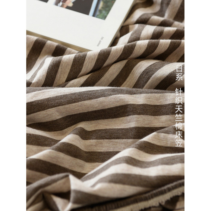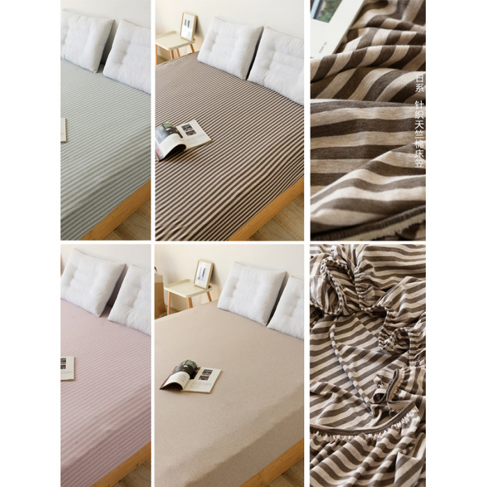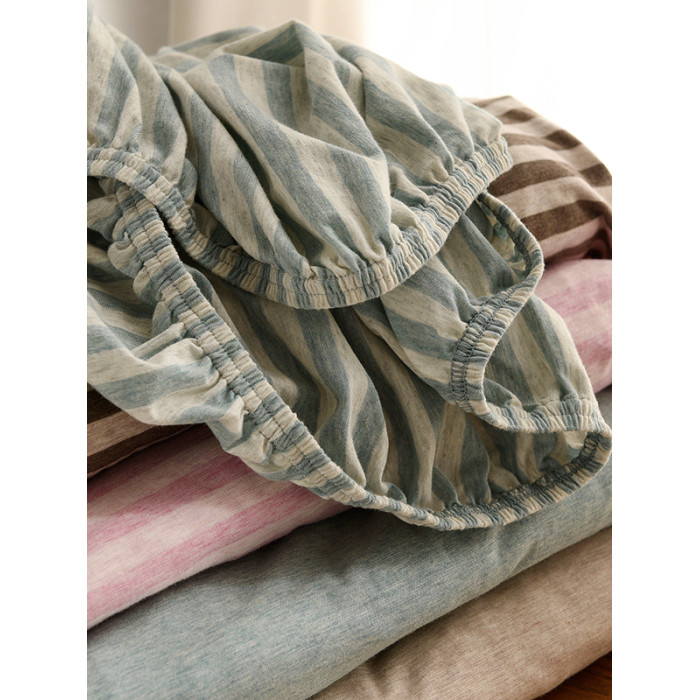 針織天竺棉床笠 日系純棉色織條紋純色 簡約舒適床品 四季可用