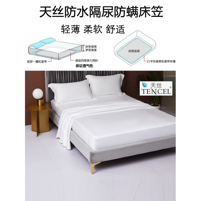 高檔天絲防水床笠防蟎蟲兒童床罩隔尿透氣床墊防護罩薄款可洗1.8m