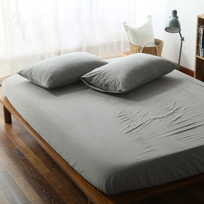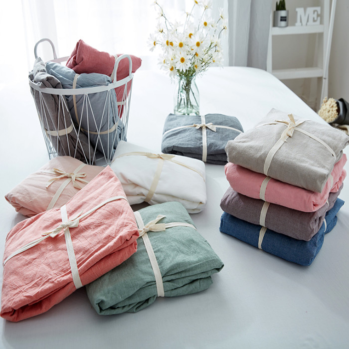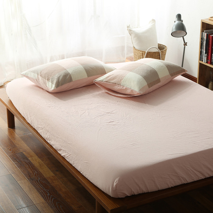 日式純棉床單床笠單件純色水洗棉雙人單人水洗棉全棉簡約簡單素色