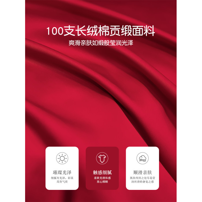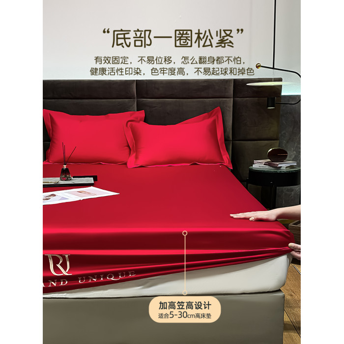 大紅色結婚慶床笠三件套純棉全棉100床罩單件六面全包床墊套高檔