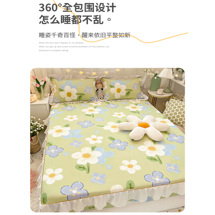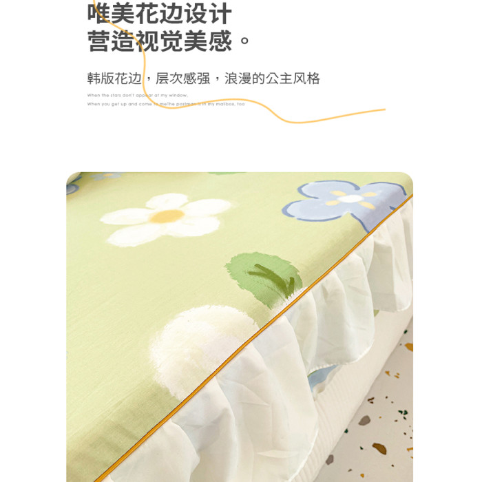 花邊款純棉床笠罩單件四季通用100全棉公主床罩床單帶裙邊三件套4
