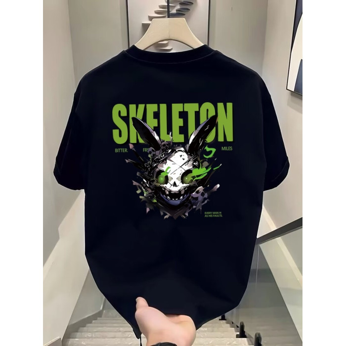純棉短袖T恤潮牌男t恤男士大碼國潮寬松圓領印花潮流上衣ins情侶