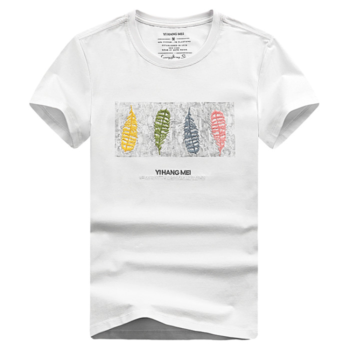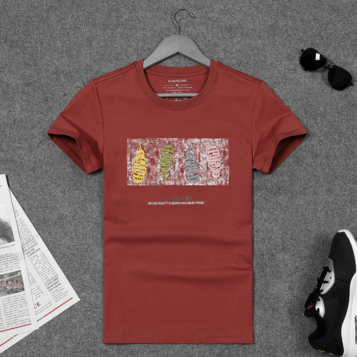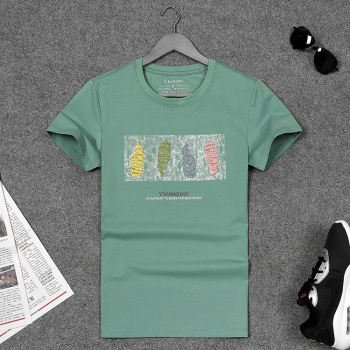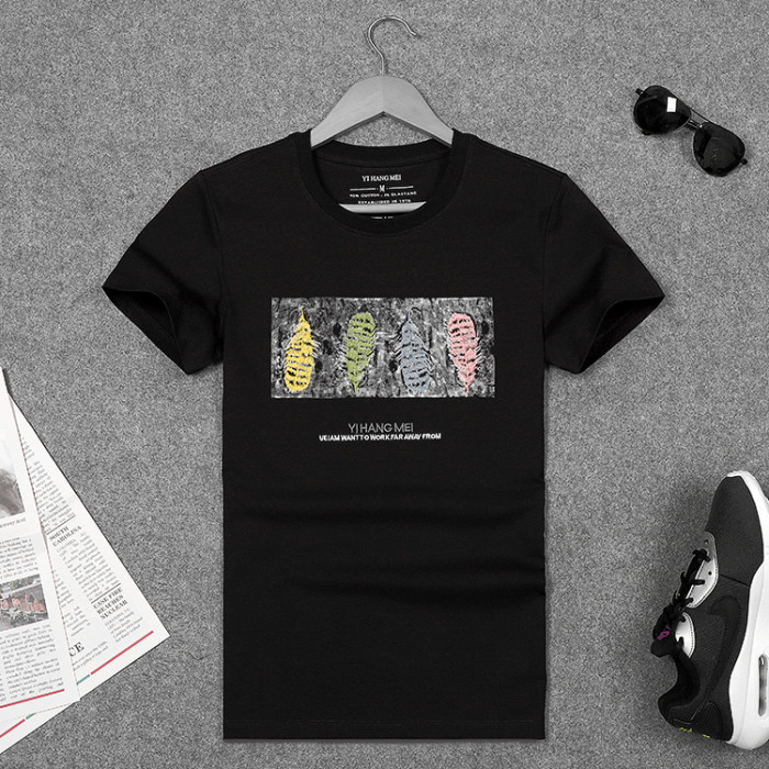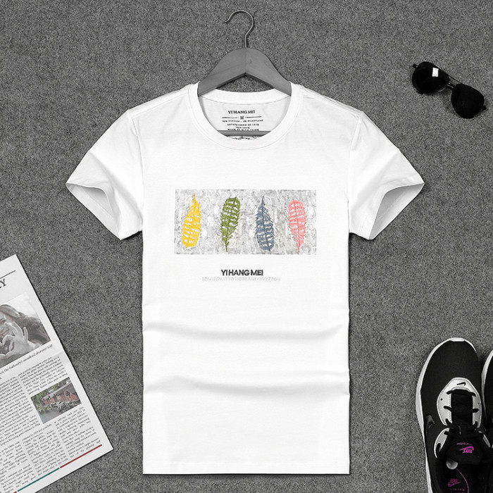 男士新款夏裝萊卡棉印花青年打底衫短袖體恤 韓版休閒潮男T恤