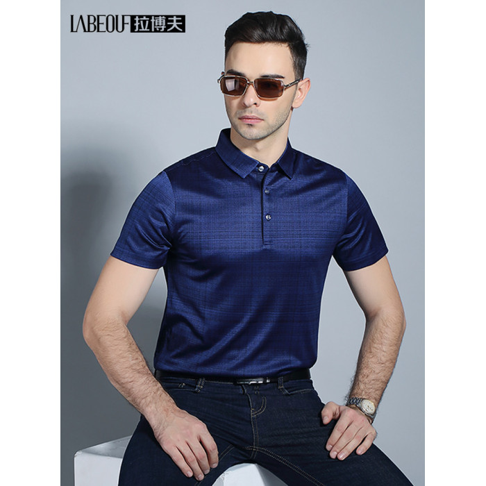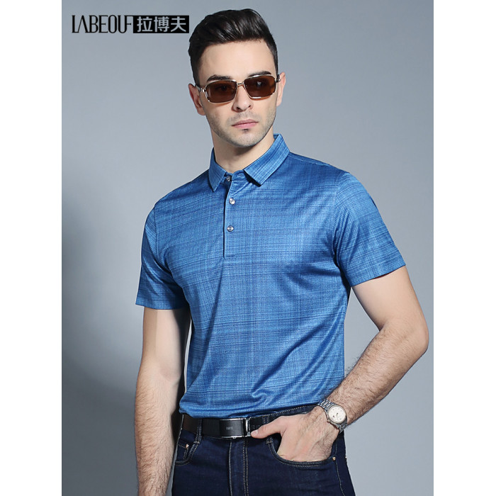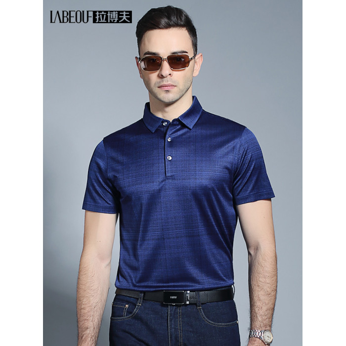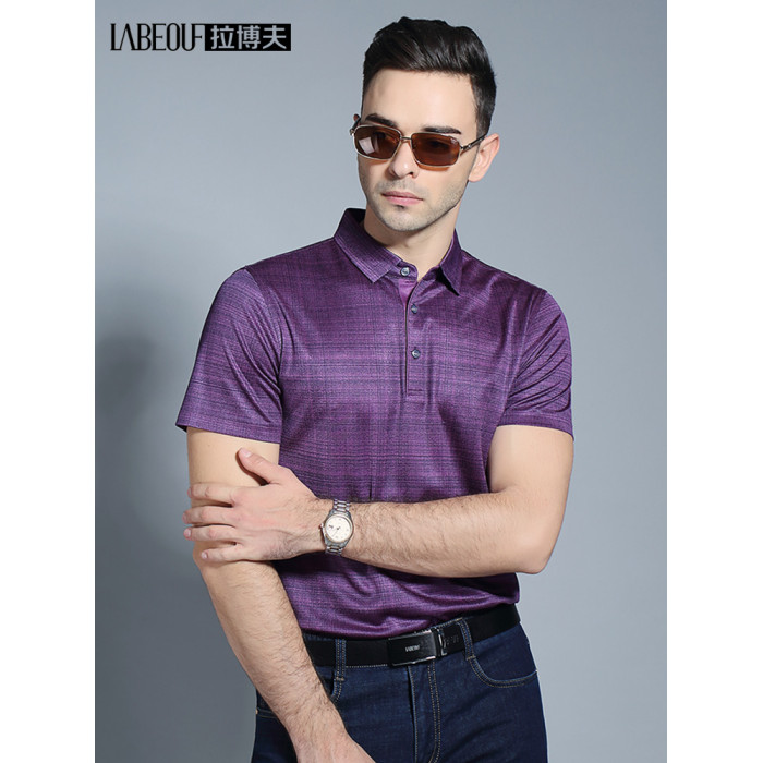 拉博夫品牌桑蠶絲男t恤中年爸爸裝短袖薄款翻領polo衫2024新款