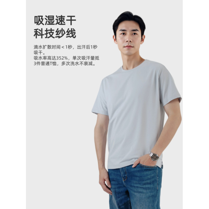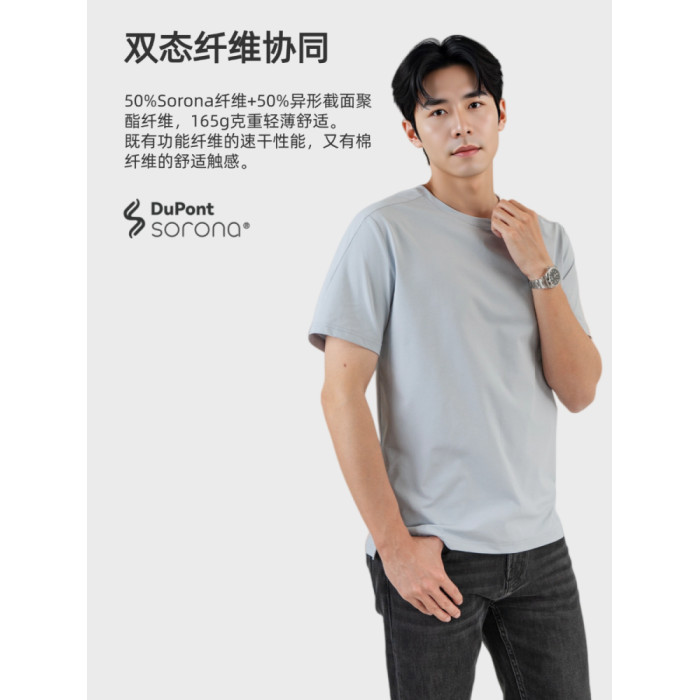 織荊鳥 | 索羅娜棉感速乾男T恤短袖運動2025新款純色圓領薄款立裁