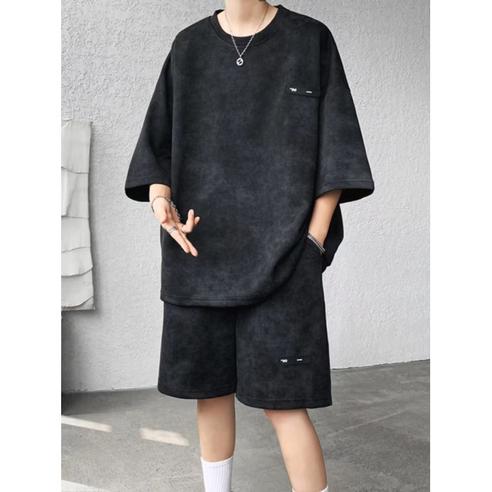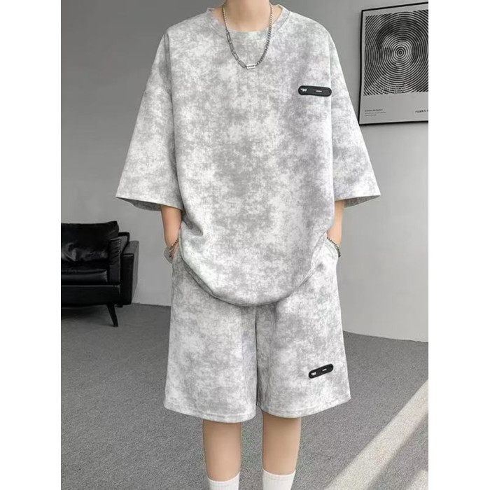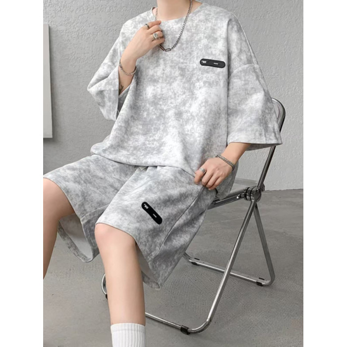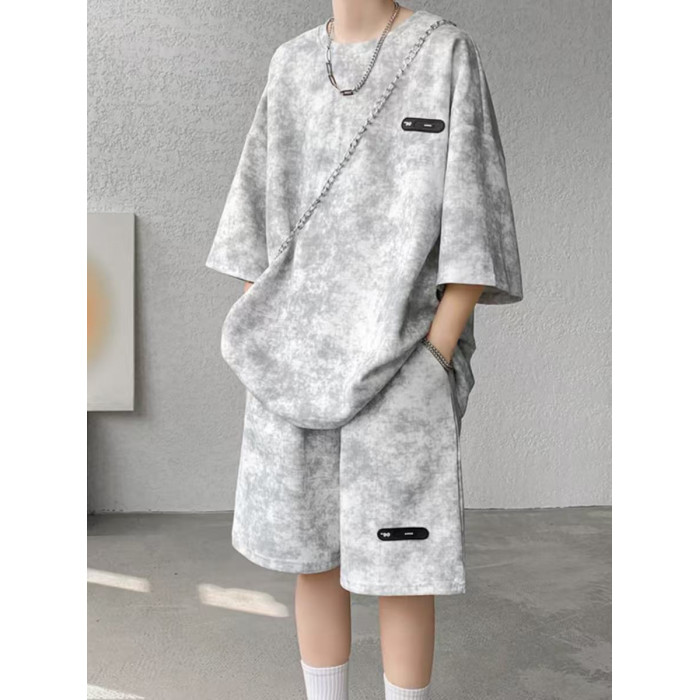 紥染短袖套裝男T恤短褲2025夏季新款美式寬松休閒兩件套 潮流一套