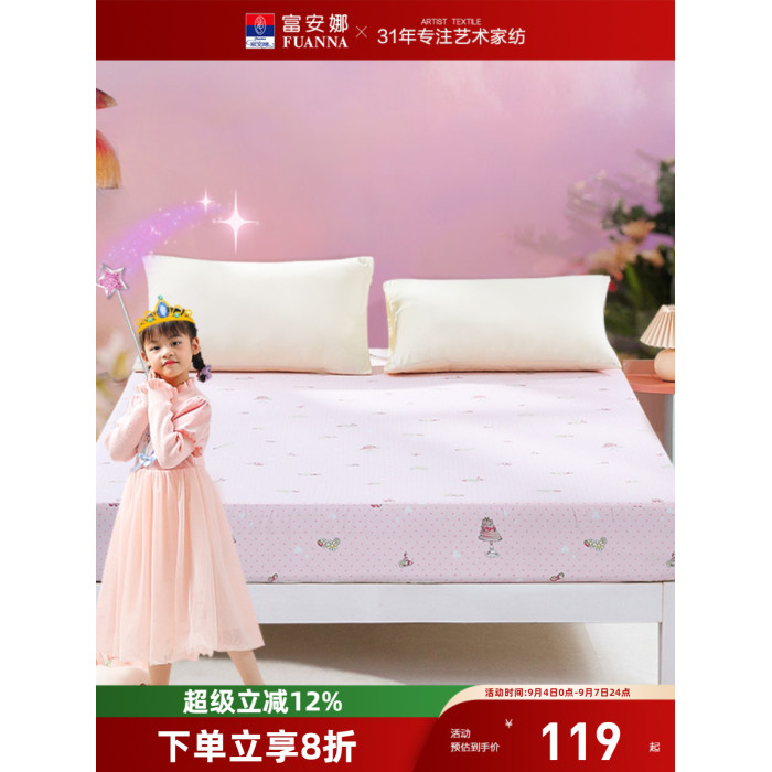 富安娜60支長絨棉兒童單件床笠全棉純棉床罩防滑床單床墊套罩床套