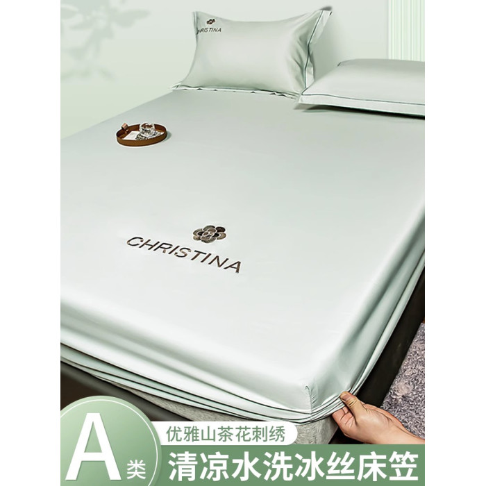 水洗冰絲床笠單件夏季真絲床墊蓆夢思全包圍防塵罩防滑床單三件套