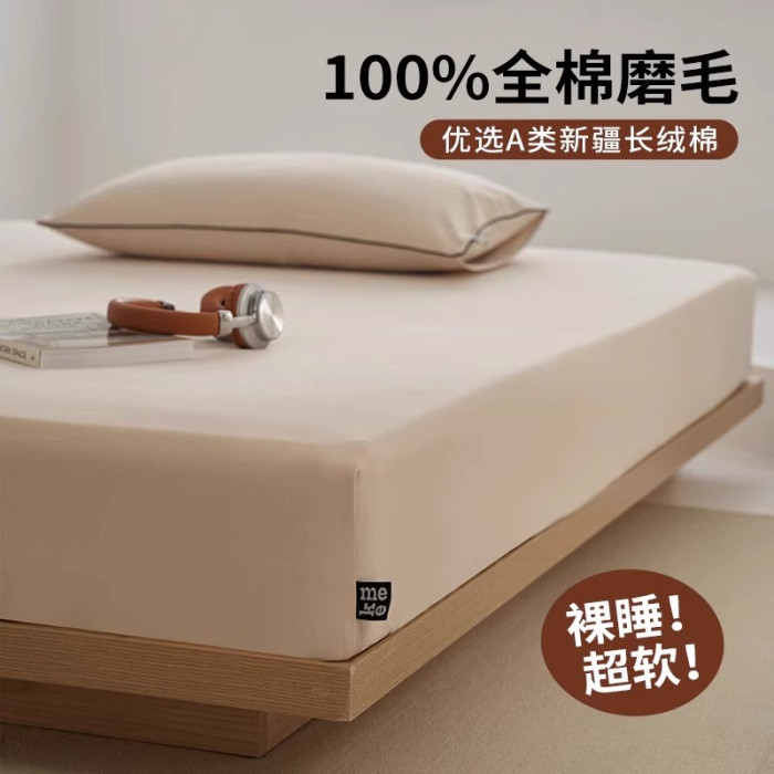 高級磨毛純棉床笠單件長絨棉床墊抑菌全棉床單防滑蓆夢思防滑套