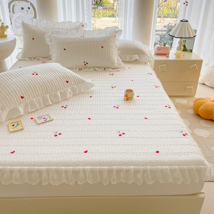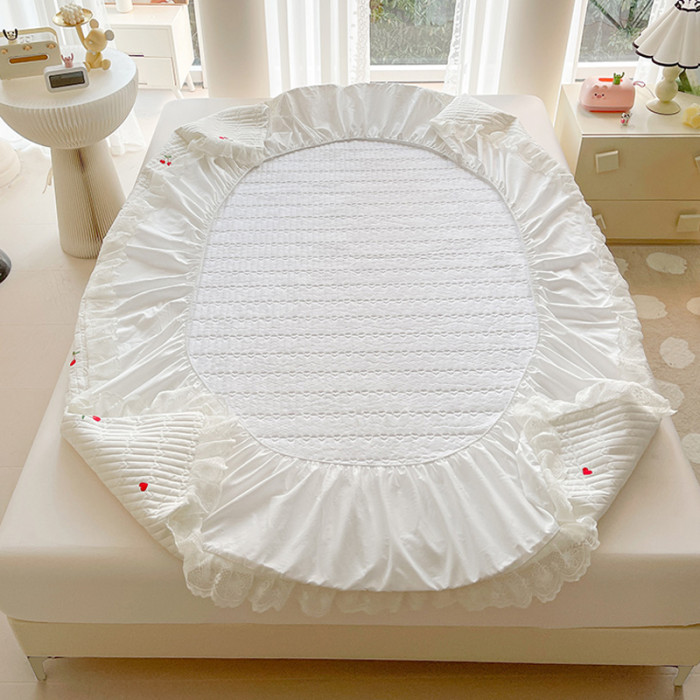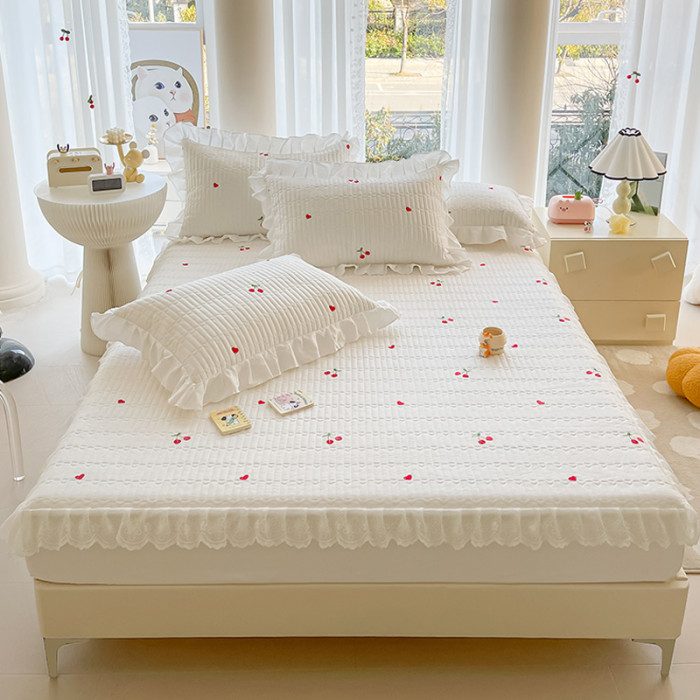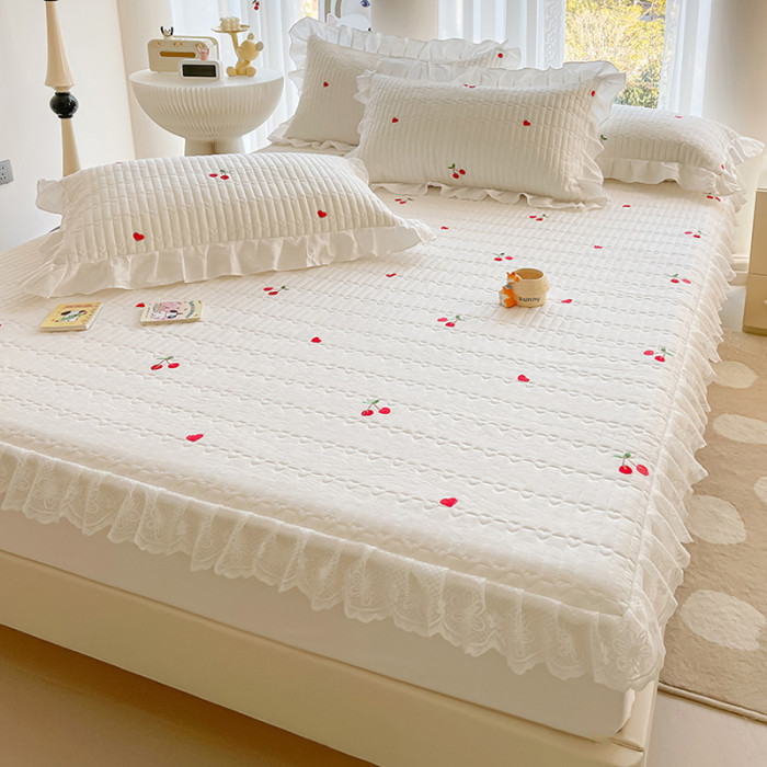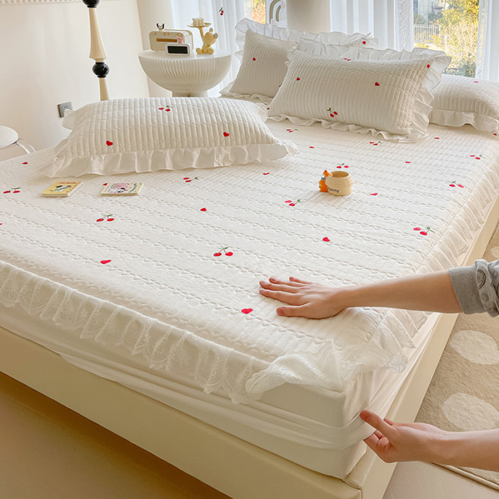a類刺綉全棉夾棉床笠單件帶花邊床罩全包加厚1.8米床圍套四季通用