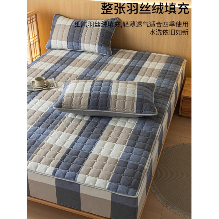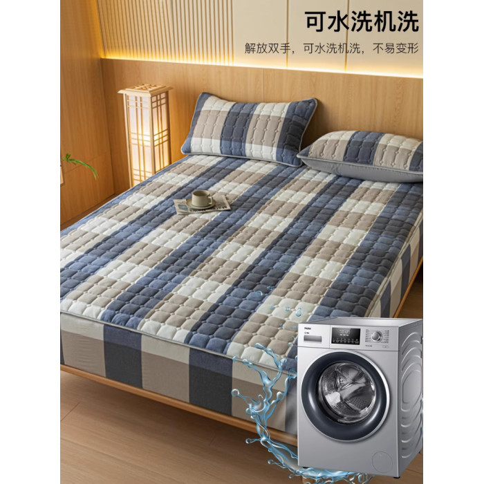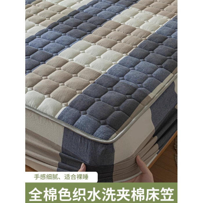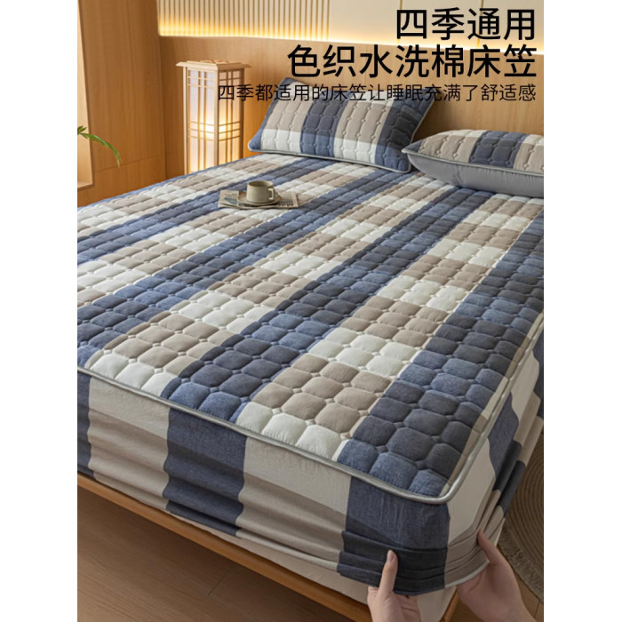 紫羅蘭A類全棉色織水洗棉夾棉抑菌床笠純棉棉床笠簡約三件套