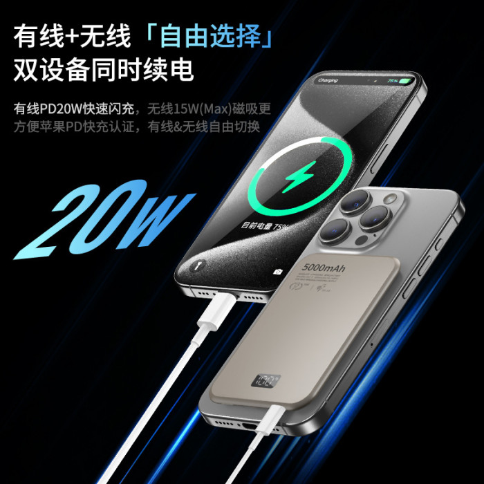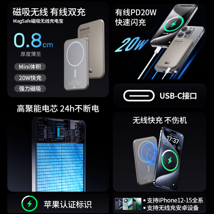 magsafe磁吸充電寶無線快充超薄金屬外接電源適用於蘋果安卓手機