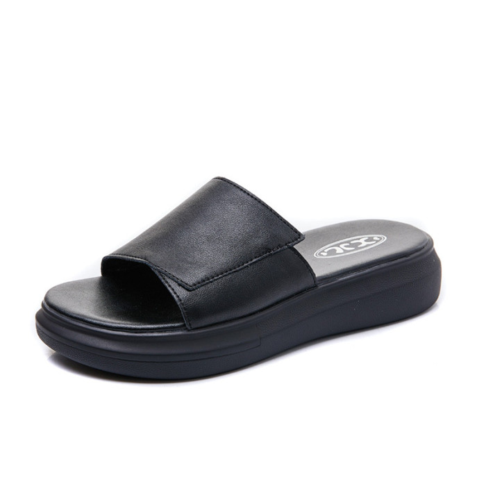 涼拖鞋女牛皮夏季外穿2025新款室內松糕厚底外出網紅平底沙灘拖鞋