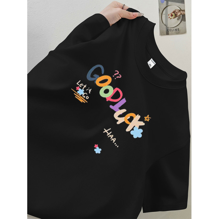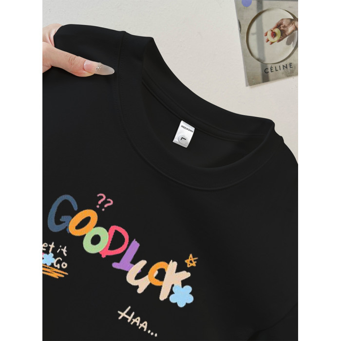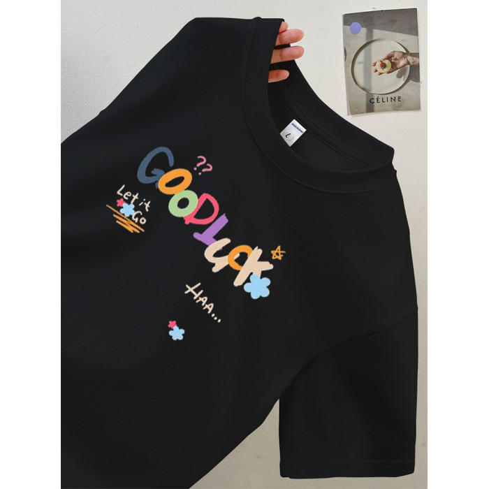 WASSUPUOSNE簡約休閒黑色純棉情侶短袖男t恤夏韓系ins風潮牌上衣