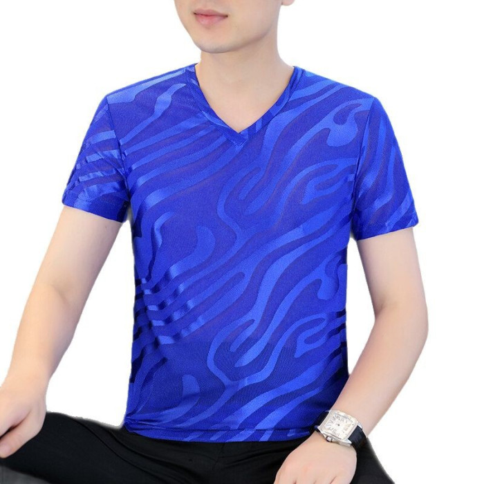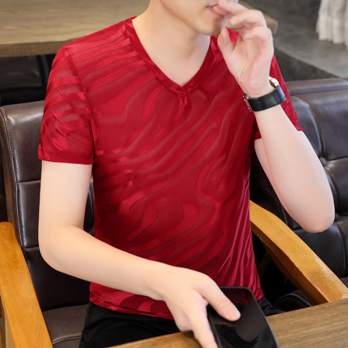 縷空網眼t恤男夏季T恤 短袖冰絲男t恤 薄款透氣網格ins男士體恤