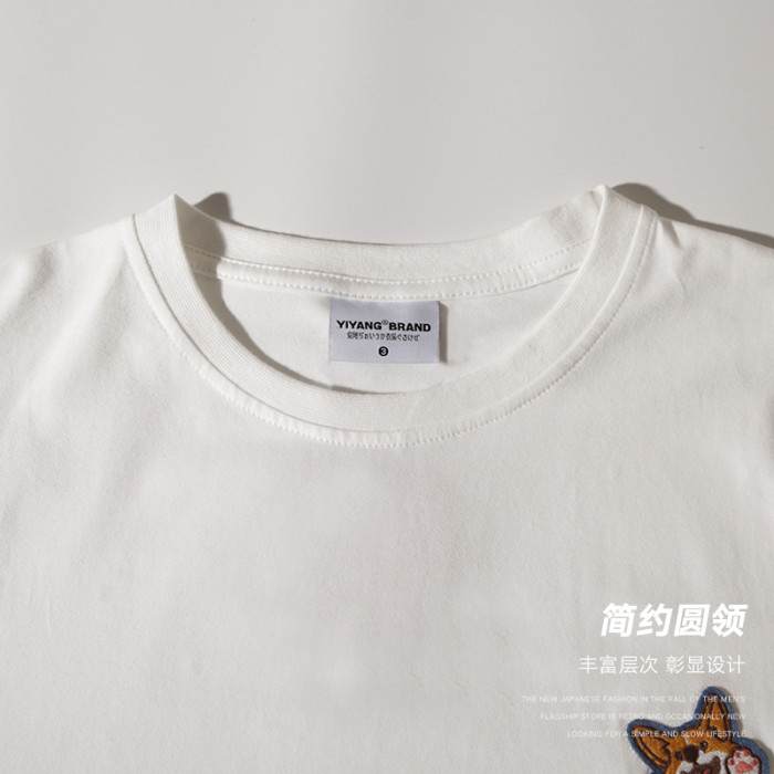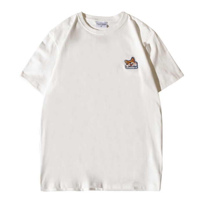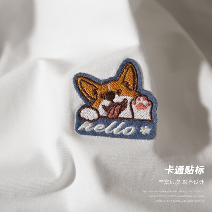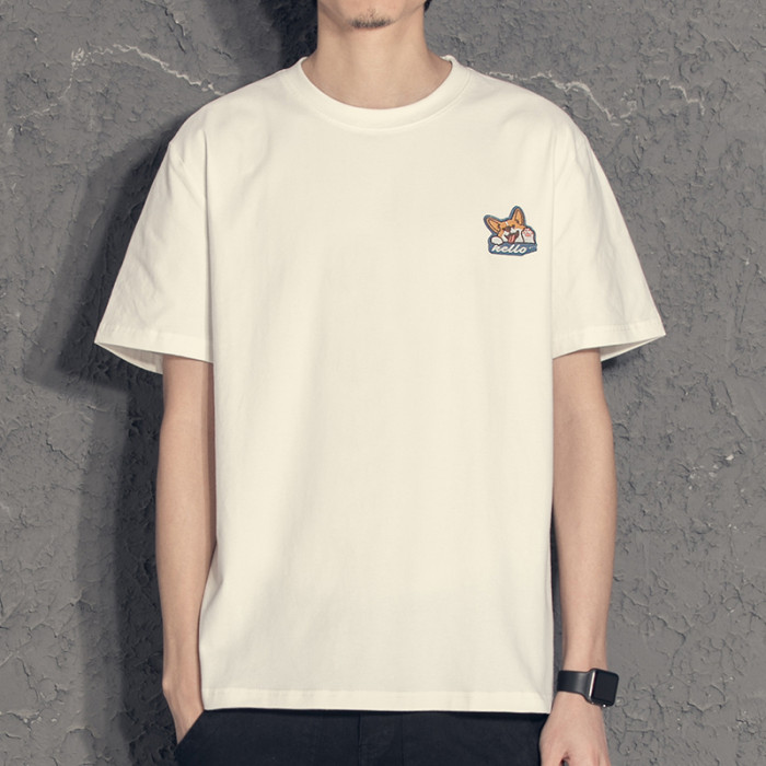柯基貼布刺綉休閒短袖n男t恤2021夏季新款情侶白色打底半袖體恤衫