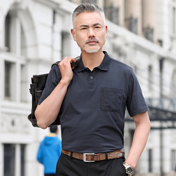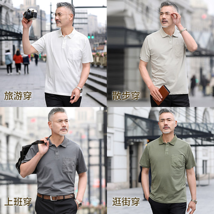 爸爸polo衫有口袋男t恤短袖中年夏裝大碼半袖中老年人棉上衣薄款