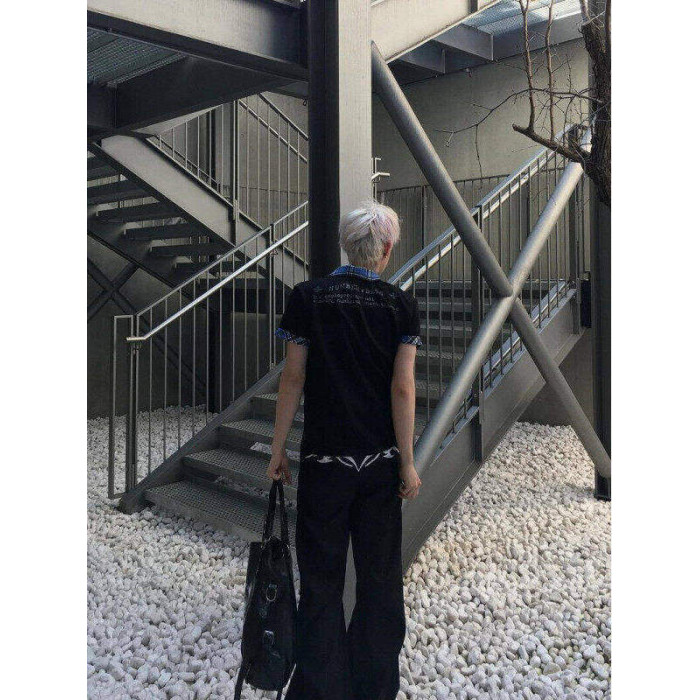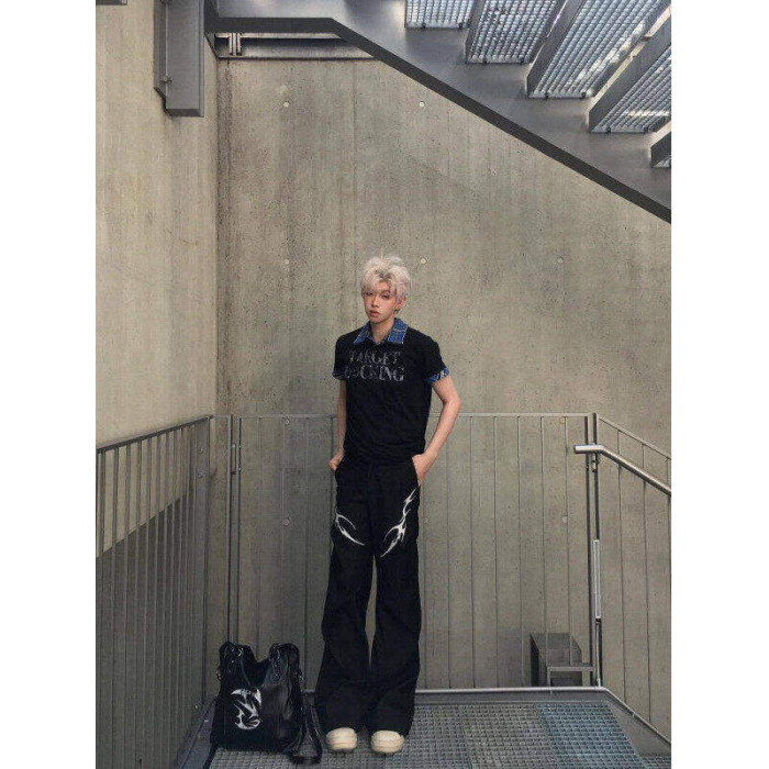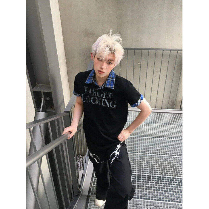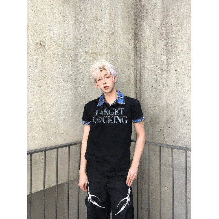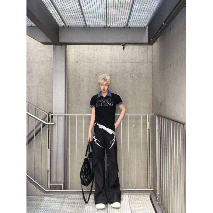 美式潮牌男T恤假兩件Polo衫短袖t恤男夏季新款潮牌美式印花五分袖