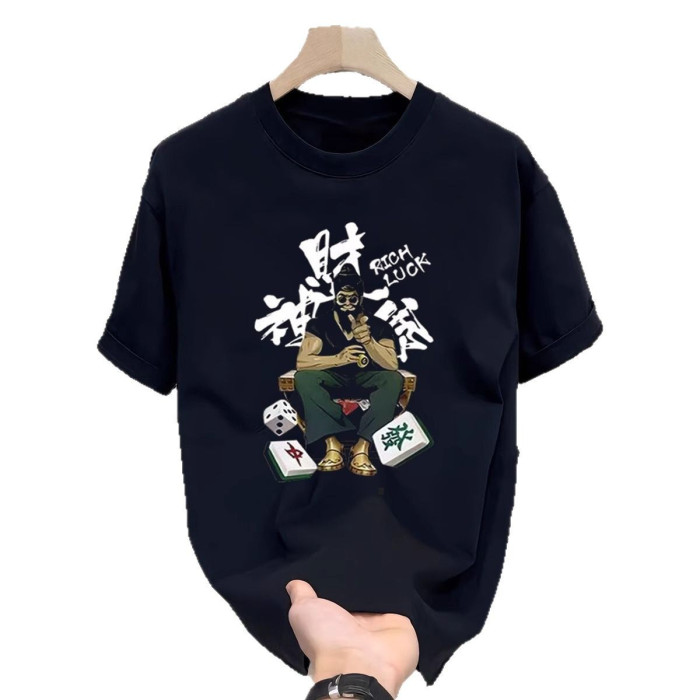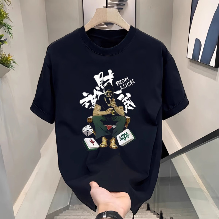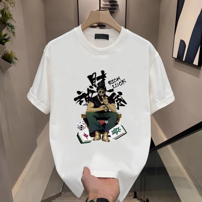 100%重磅純棉字母男t恤短袖夏寬松美式正肩潮牌ins2025新款五分袖