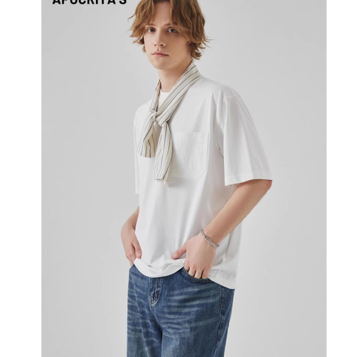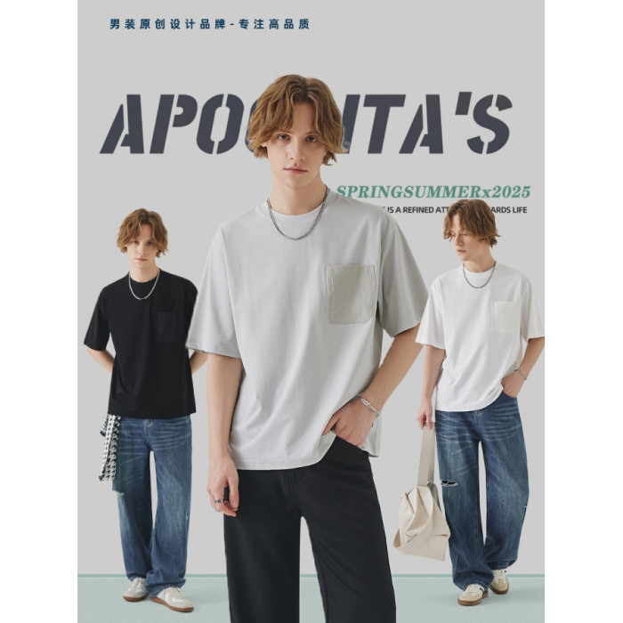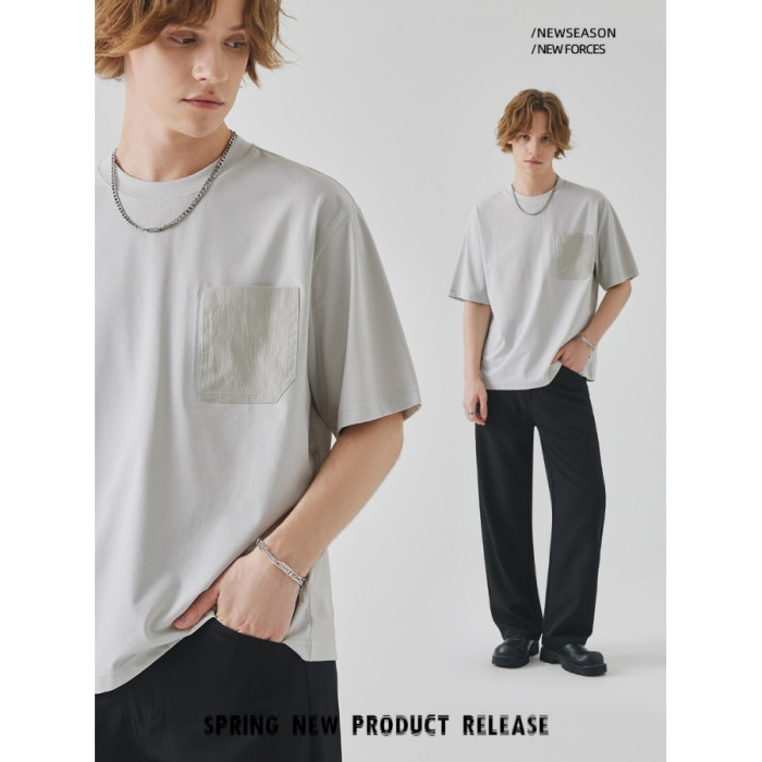 v.s holiday男裝夏短袖男T恤寬松休閒百搭舒適純色圓領上衣打底衫