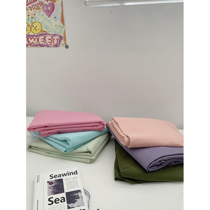 多巴胺色純色條紋裸睡純棉透氣吸汗床單全棉水洗棉床笠