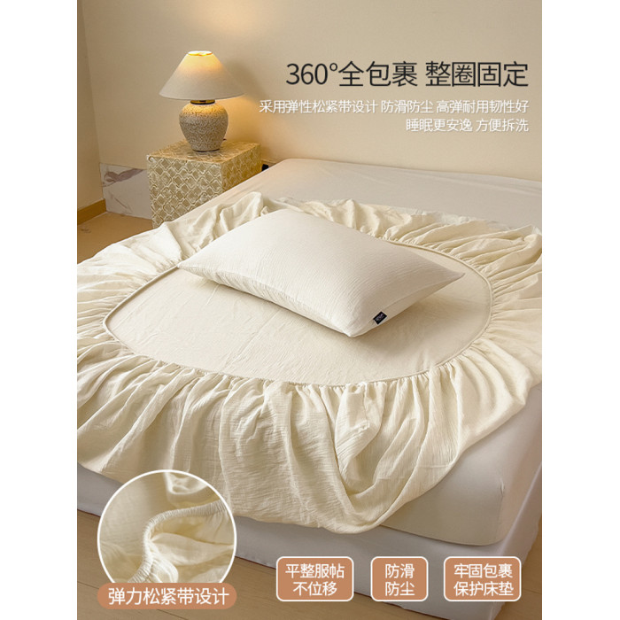 全棉雙層皺皺紗床笠純棉2025新款四季通用床罩A類蓆夢思床墊套單