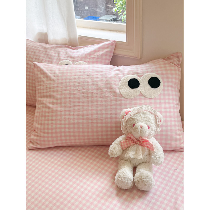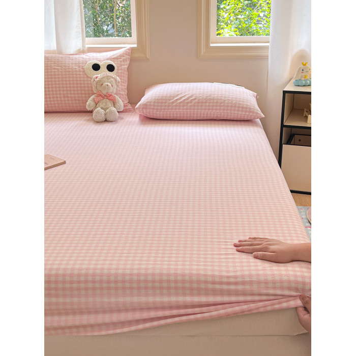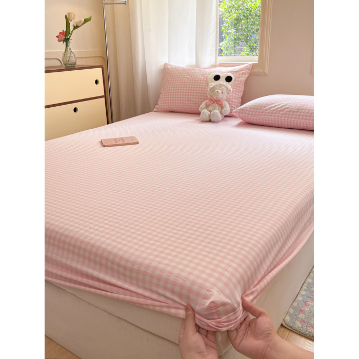 【富士商店】全棉色織水洗棉大眼毛巾綉單件純棉床笠枕套三件套