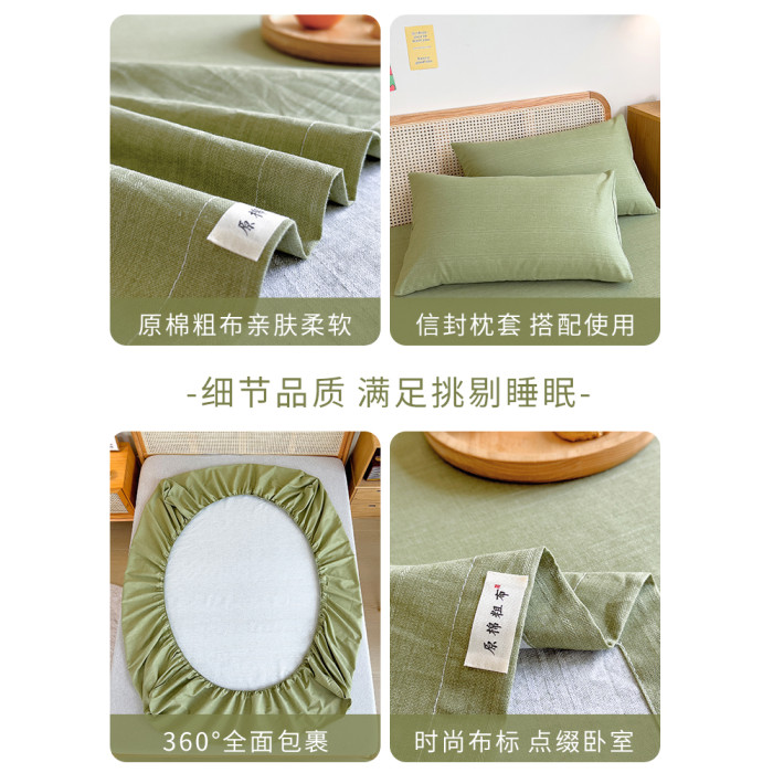 純棉老粗布床笠單件100全棉被單人亞麻帆布捨宿枕套厚床單三件套