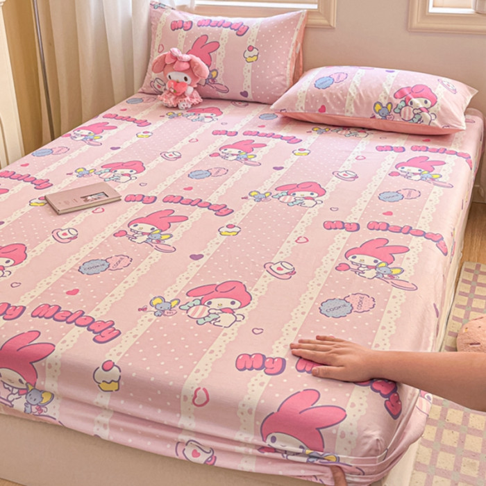 美樂蒂卡通純棉床笠女孩單件全棉床罩防滑床墊套兒童床單蓆夢思套