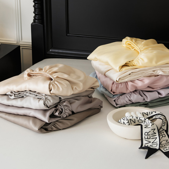 北歐風輕奢60支蘭精天絲雙人床單 簡約純色夏季裸睡雙面冰絲床笠