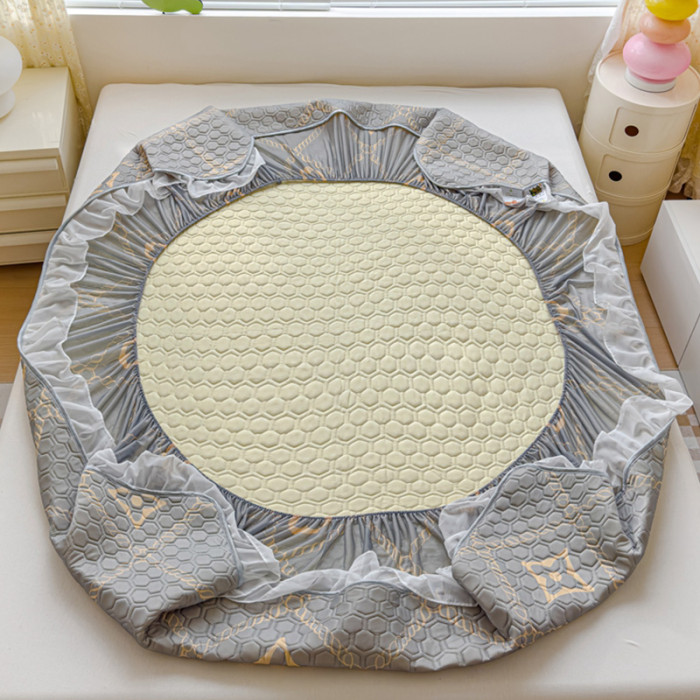 乳膠涼蓆三件套花邊床笠款1.8m夏季冰絲涼蓆四件套夏被軟蓆可機洗
