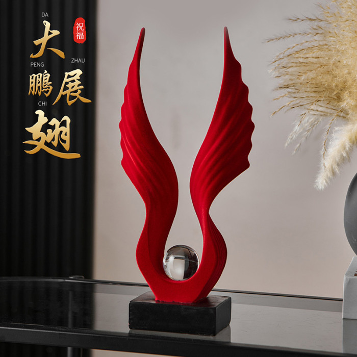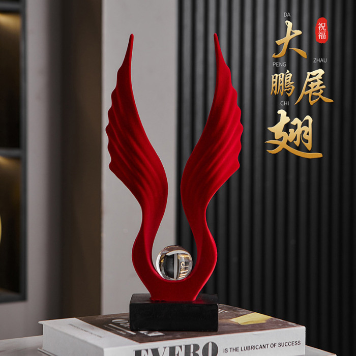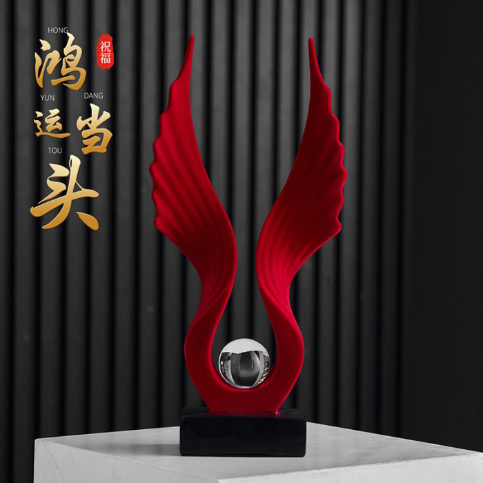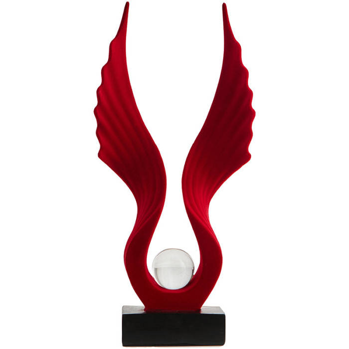 Y-植羢展翅水晶球擺件-紅