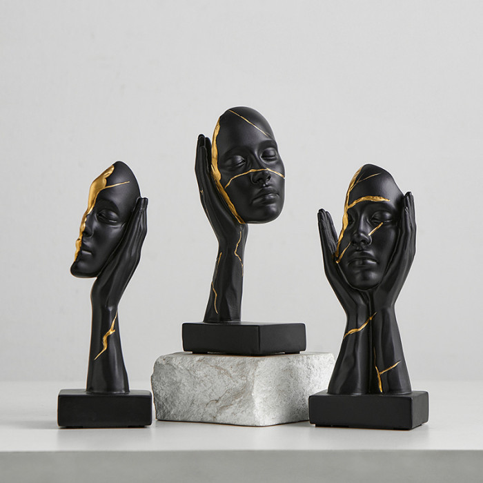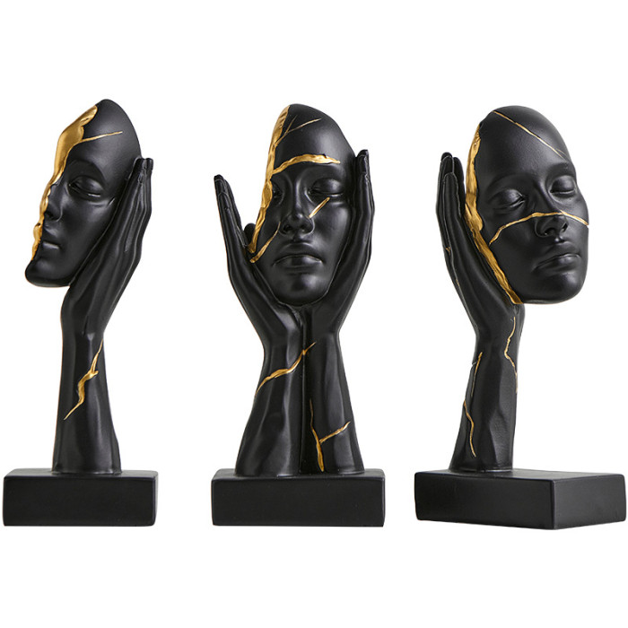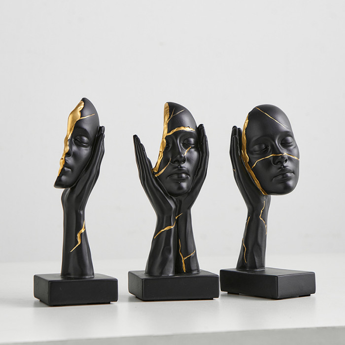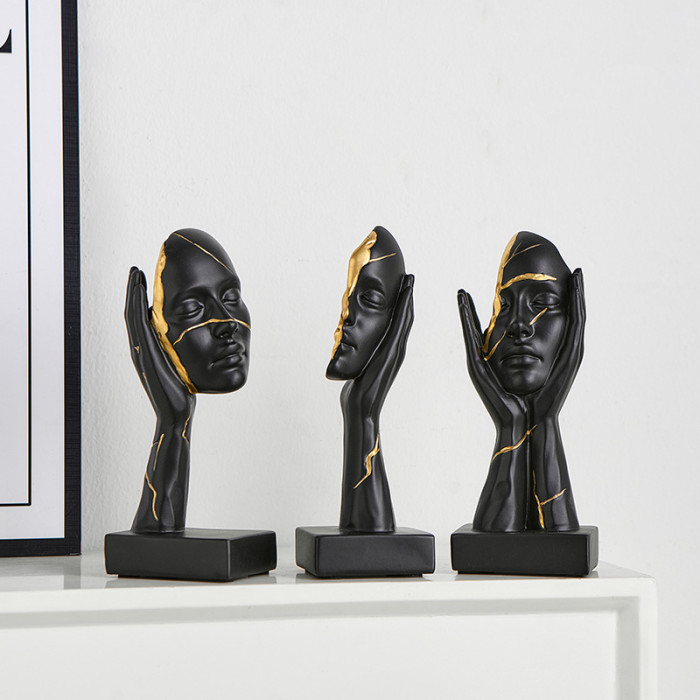 顔色 Y-樹脂描金人臉擺件套裝-三件套