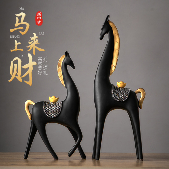 馬上有錢輕奢客廳電視櫃酒櫃辦公室樹脂工藝品裝飾擺件高級感小衆
