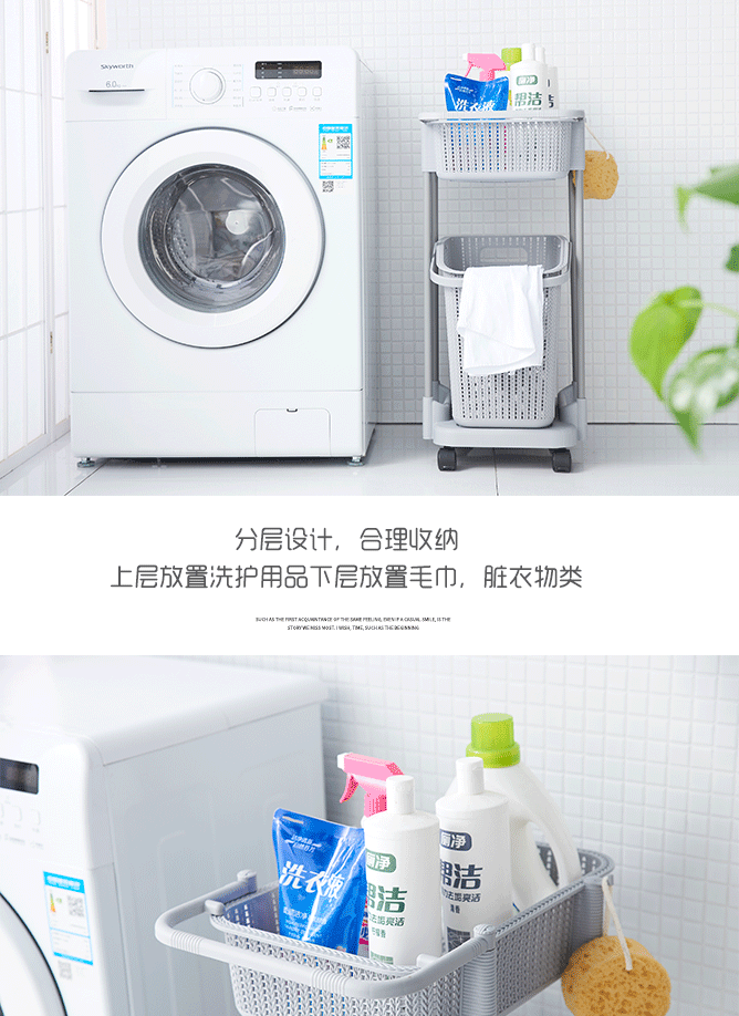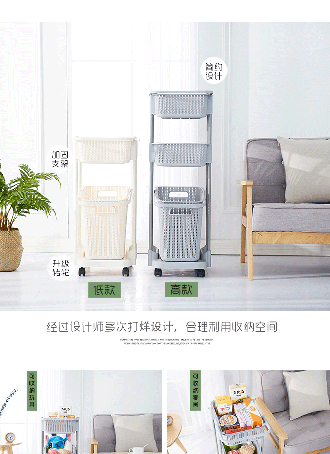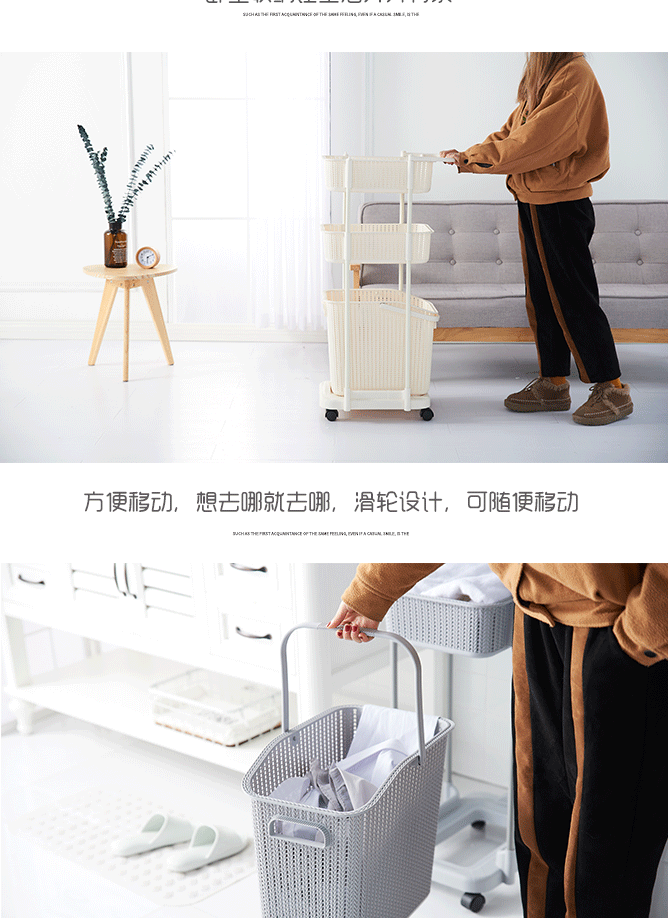 多層推車置物架可移動髒衣籃浴室收納筐帶滑輪髒衣簍玩具收納架