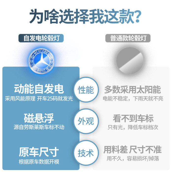 適用於奔馳磁懸浮輪轂蓋燈新C級A級E級E300L C260L改裝發光車輪燈