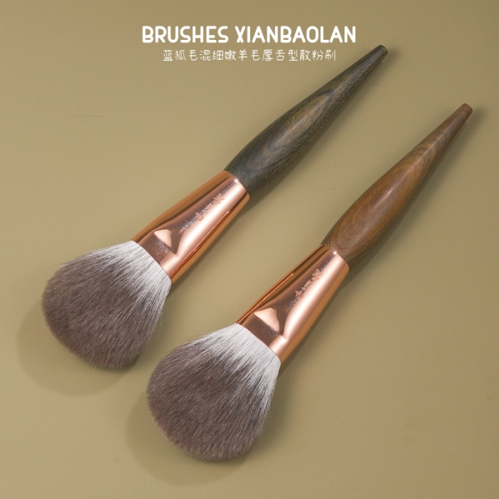 綠檀木藍狐毛混細嫩光峰羊毛散粉刷厚舌型臉部定妝化妝刷仙寶蘭